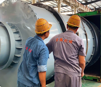 本公司高嶺土回轉(zhuǎn)窯依據(jù)筒體規(guī)格尺寸分為十一個型號,范圍為?1.6×32m-?4×80m,筒體直徑2.2m以上(含2.2m)配輔助傳動,3.0m以上(含3.0m)支撐由三組變?yōu)樗慕M,窯轉(zhuǎn)速0.58-2.85r/min,斜度3.5-4.0%,配套主電機(jī)功率18.5KW-355KW,滿足時產(chǎn)2t-20t范圍內(nèi)高嶺土礦產(chǎn)品的煅燒需求。